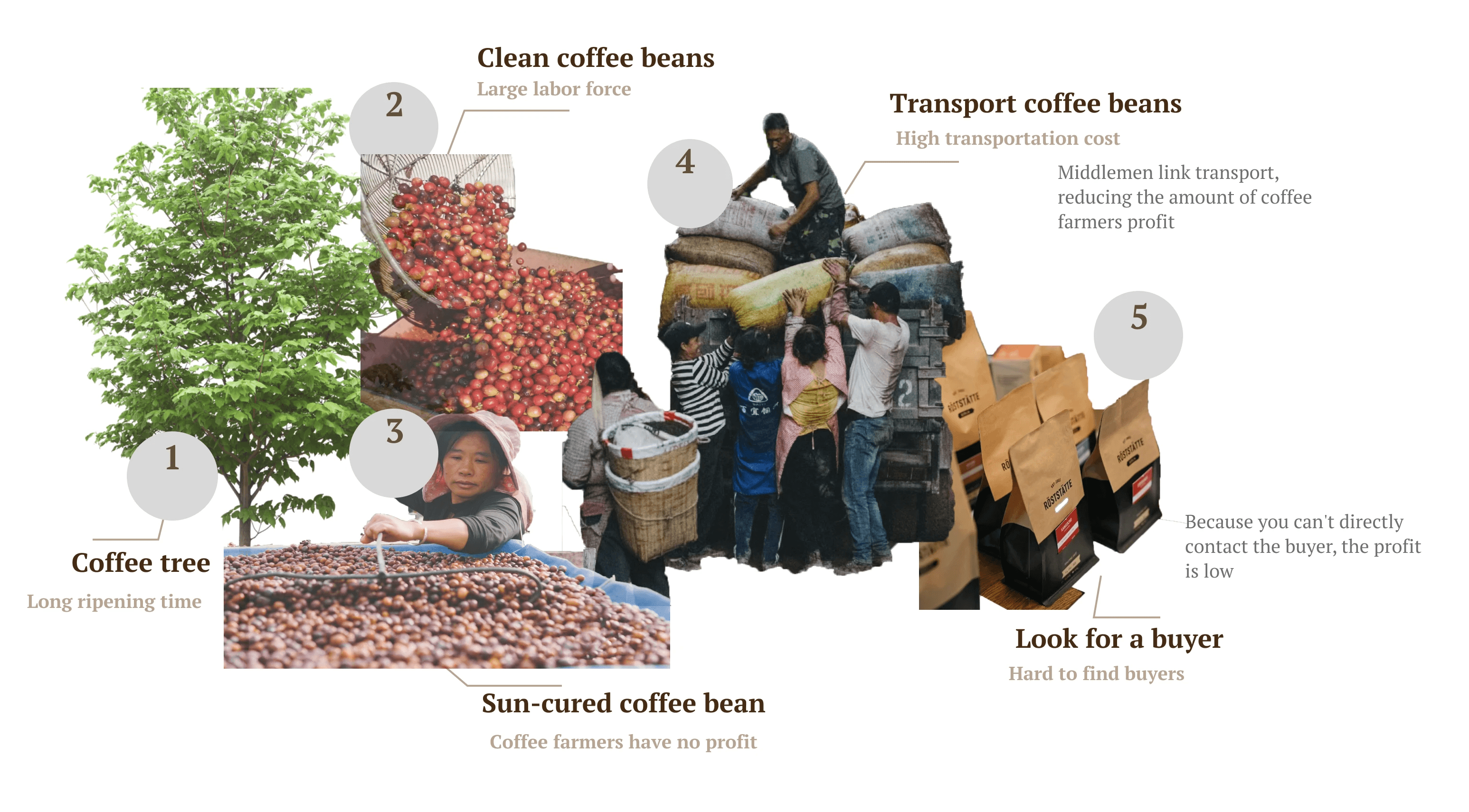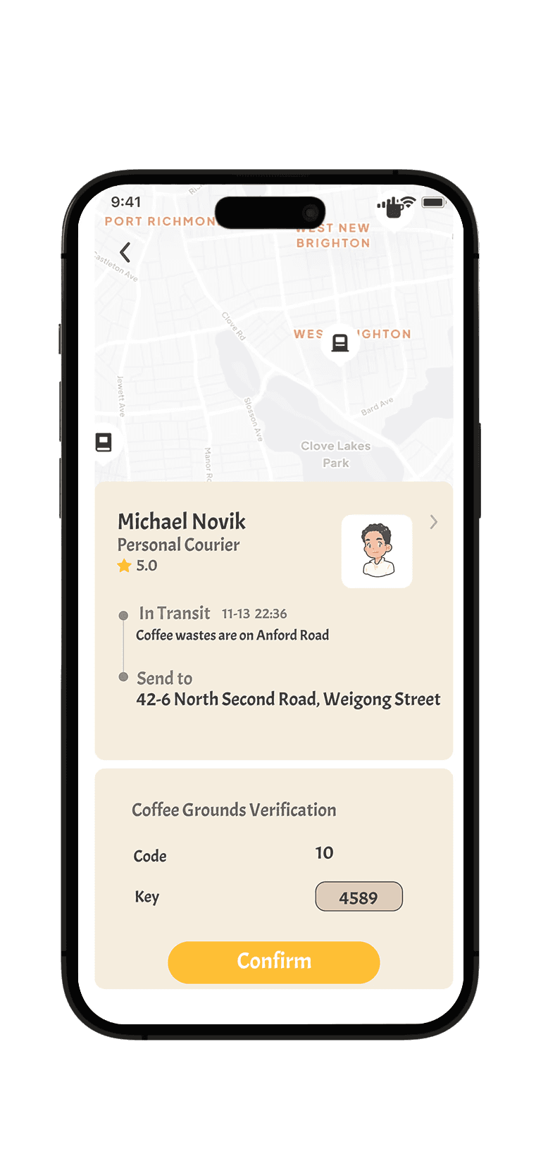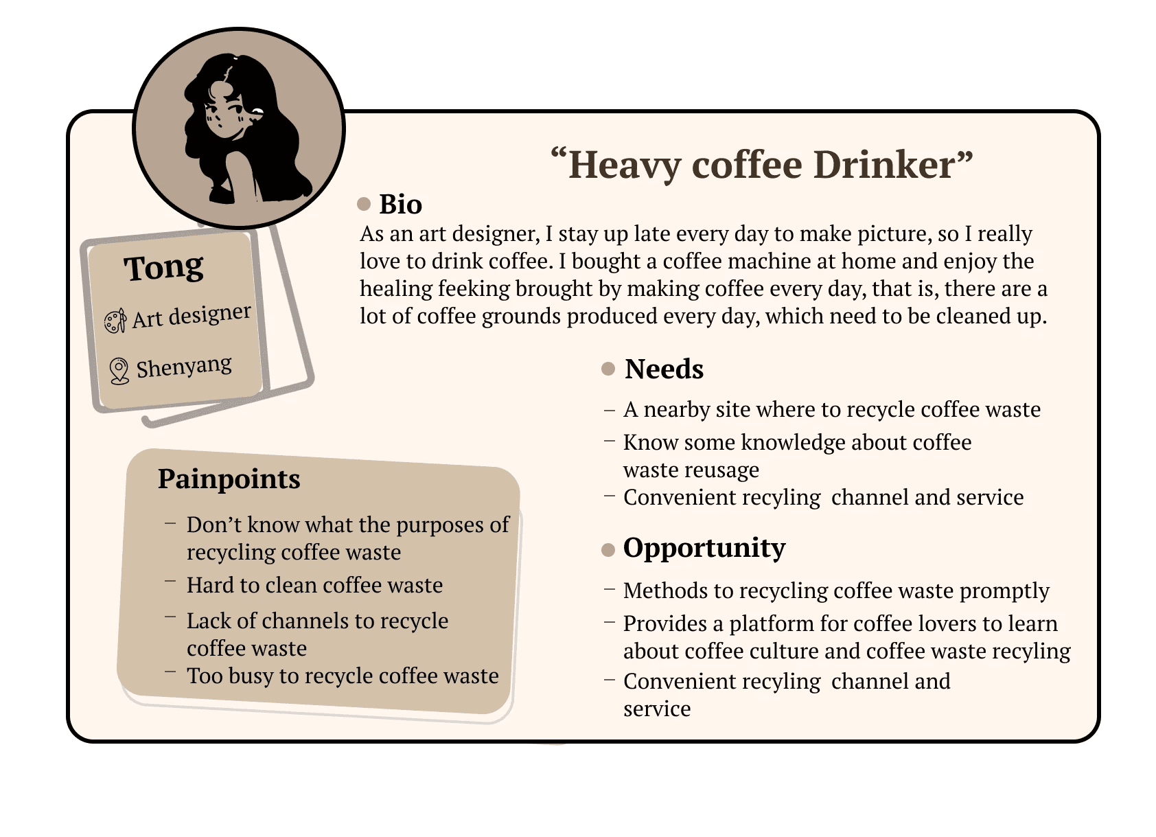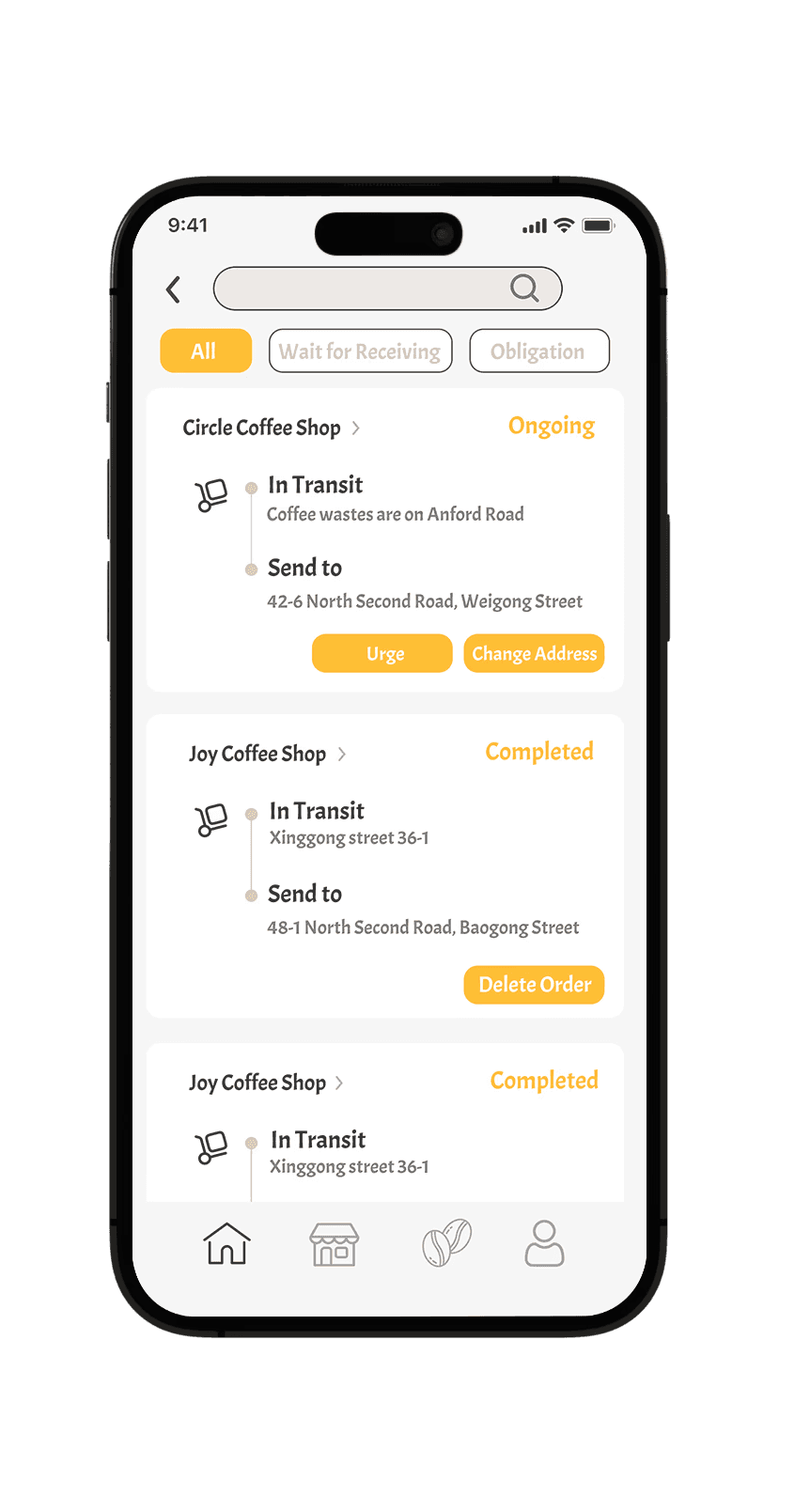 A closed-loop recycling system that connects users, coffee shops, farmers, and merchants—turning coffee grounds from everyday waste into a shared, reusable resource across the entire ecosystem.