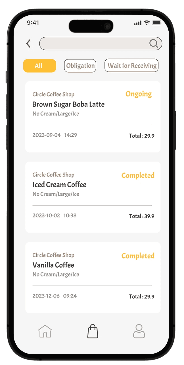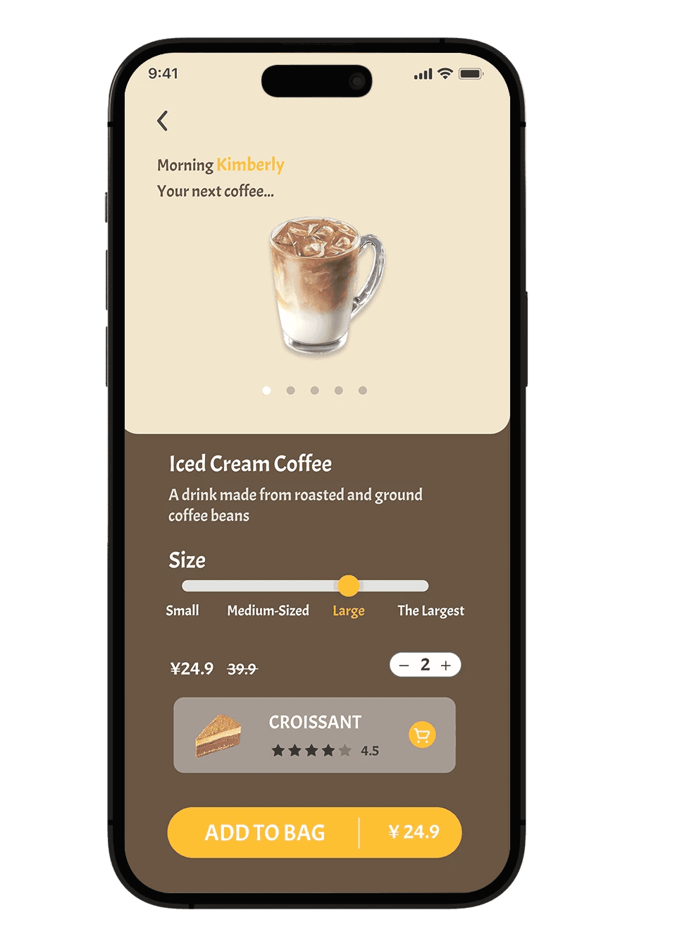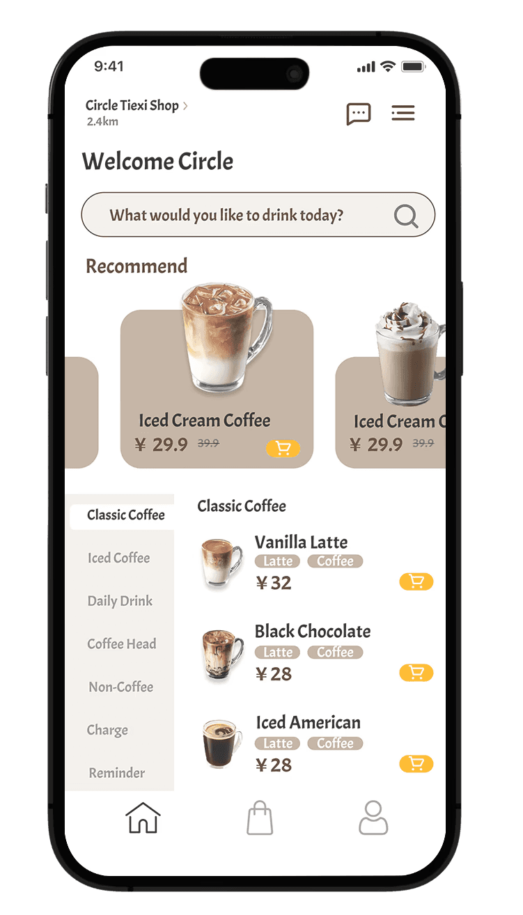 Users browse the menu, customize their drink, and place an order in a streamlined flow designed for speed and clarity.