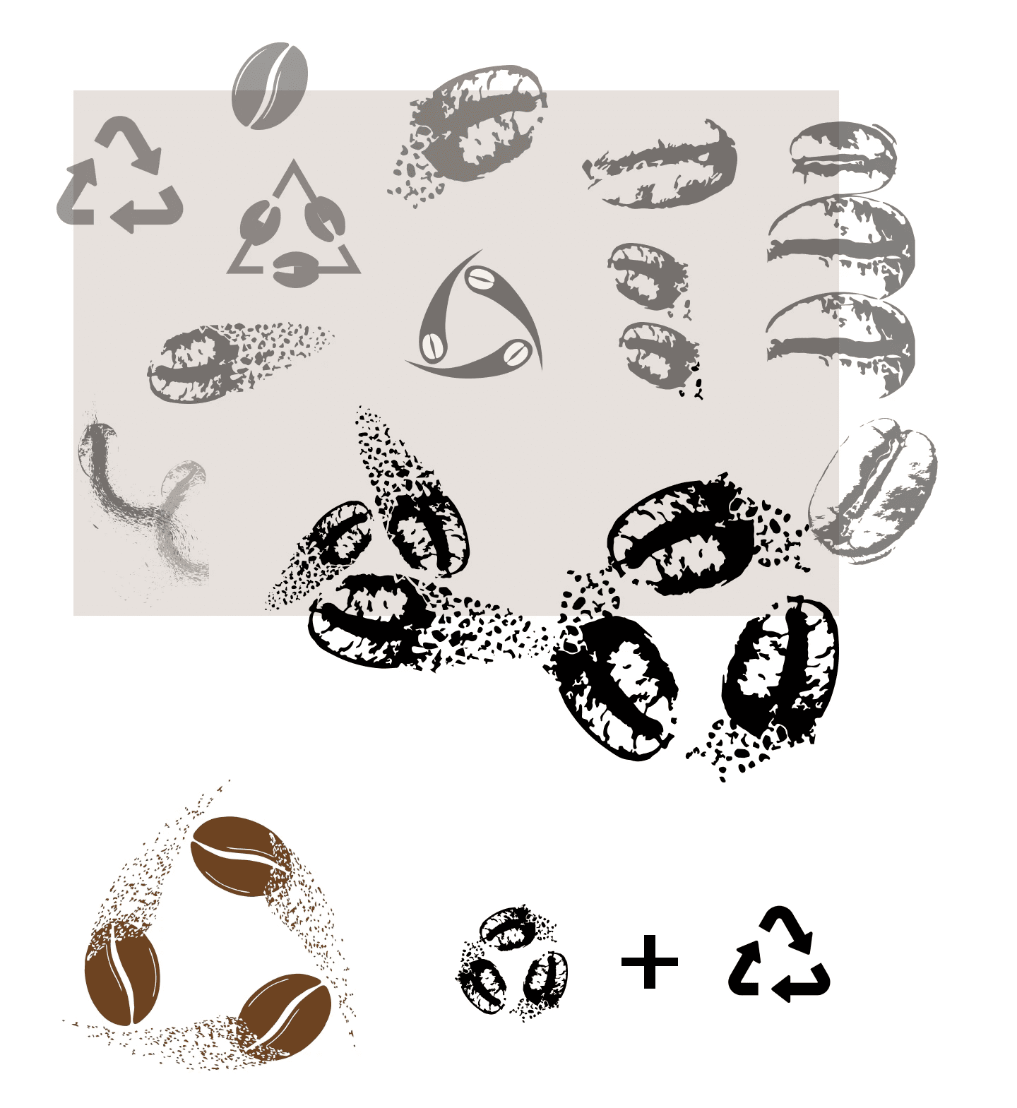 The meaning of this logo is a form of integration of coffee beans and cycle logo. I drew many drafts, ang finally found that this form can best highlight the meaning of coffee grounds cycle