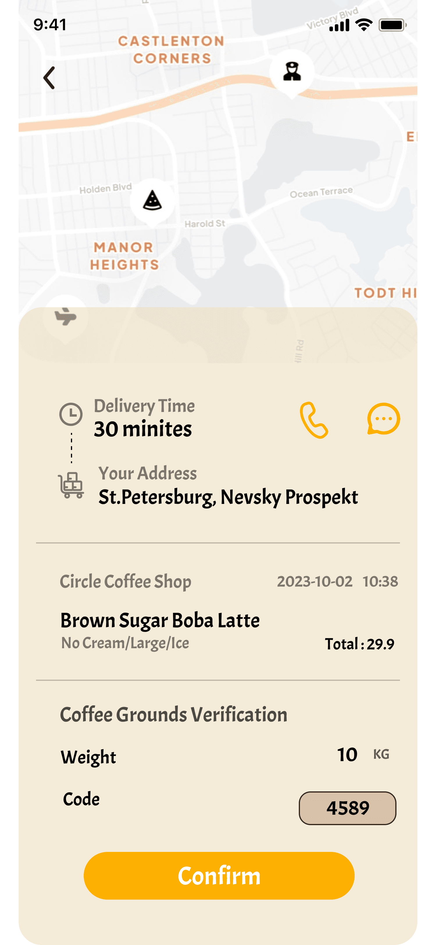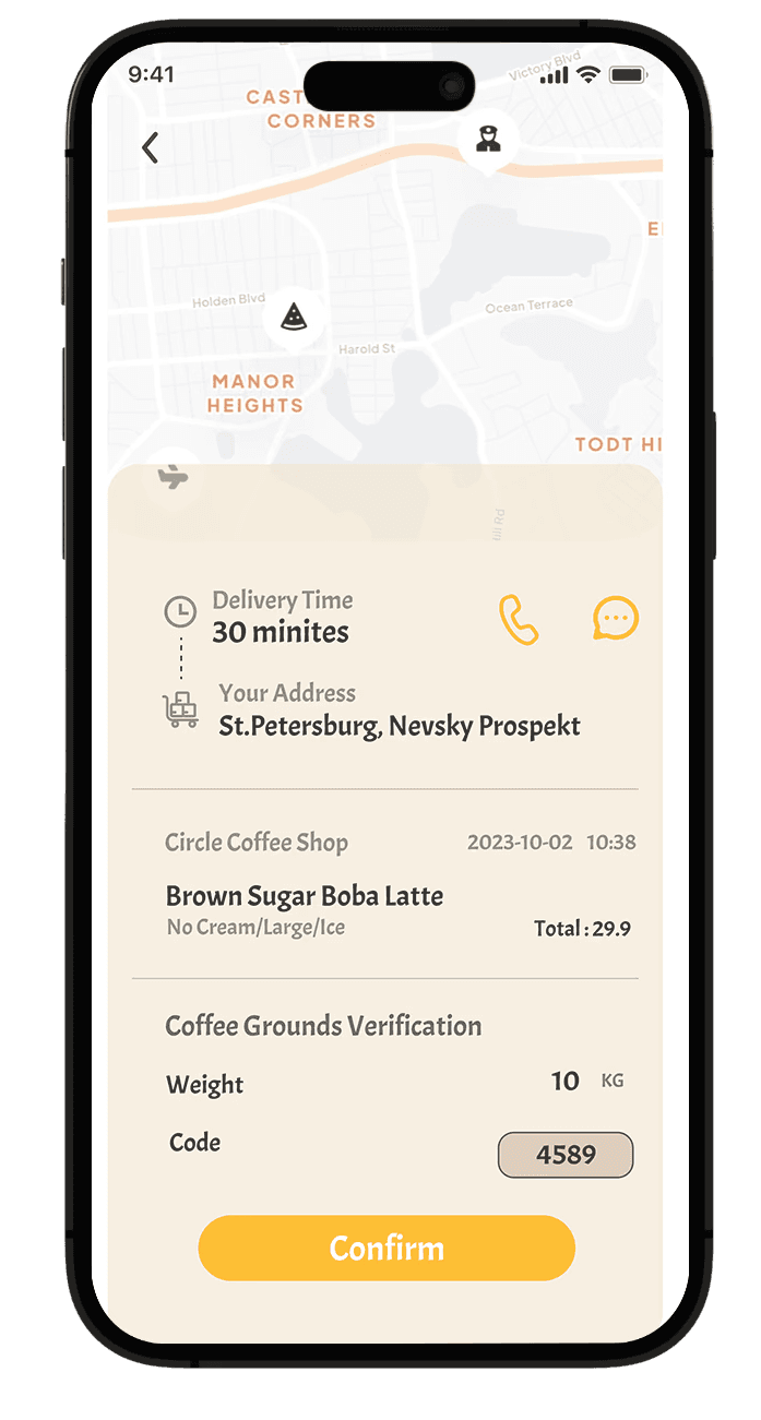 After ordering, users can add a coffee-grounds pickup service as an optional add-on—making recycling part of the same routine, not a separate task.