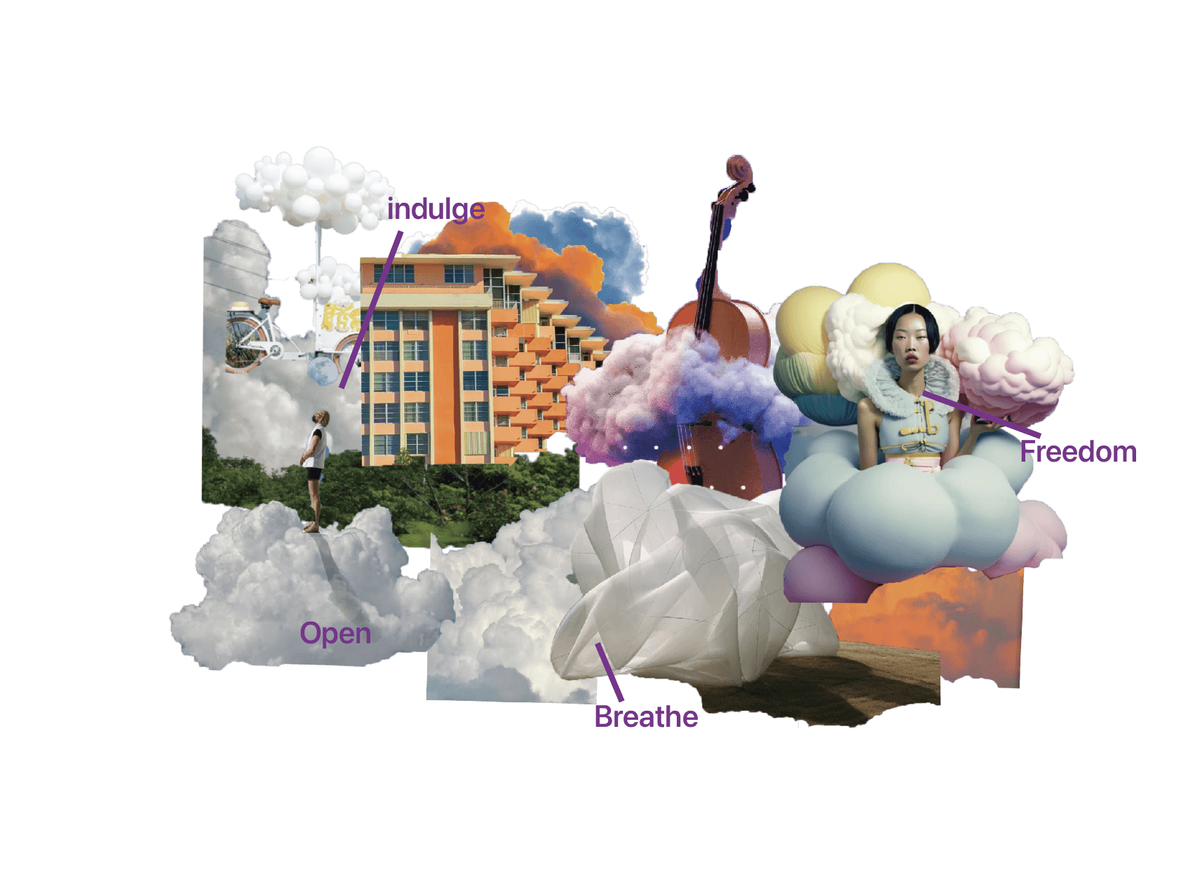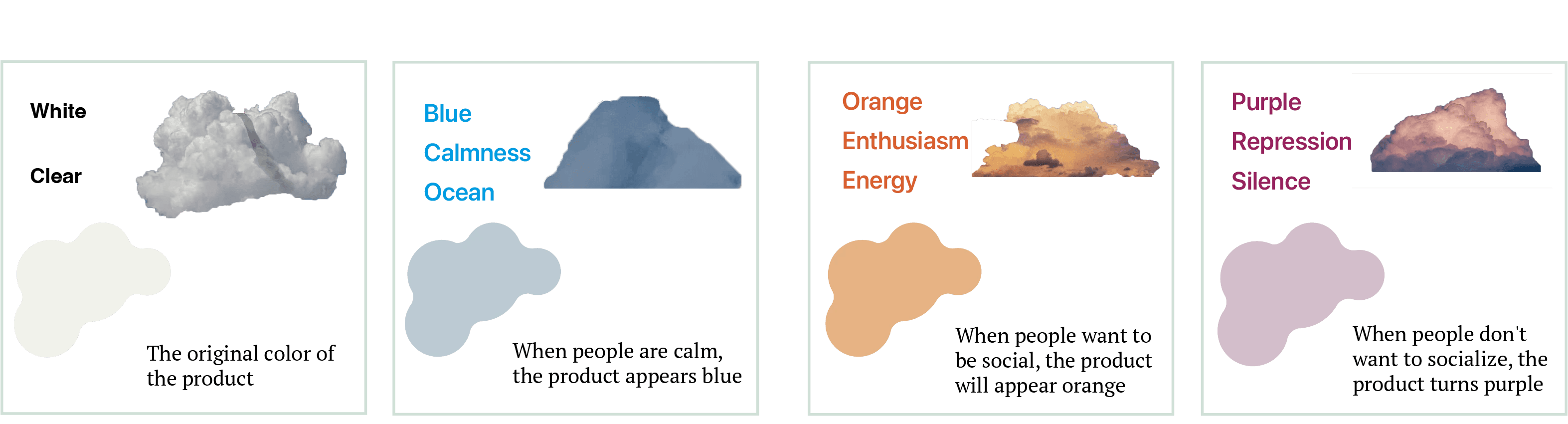 I want to use the shape to make this product. These clouds give me a feeling of freedom, comfort, roundness and softness. I want to integrate this element into the product, so that people can use it without pressure and feel comfortable.