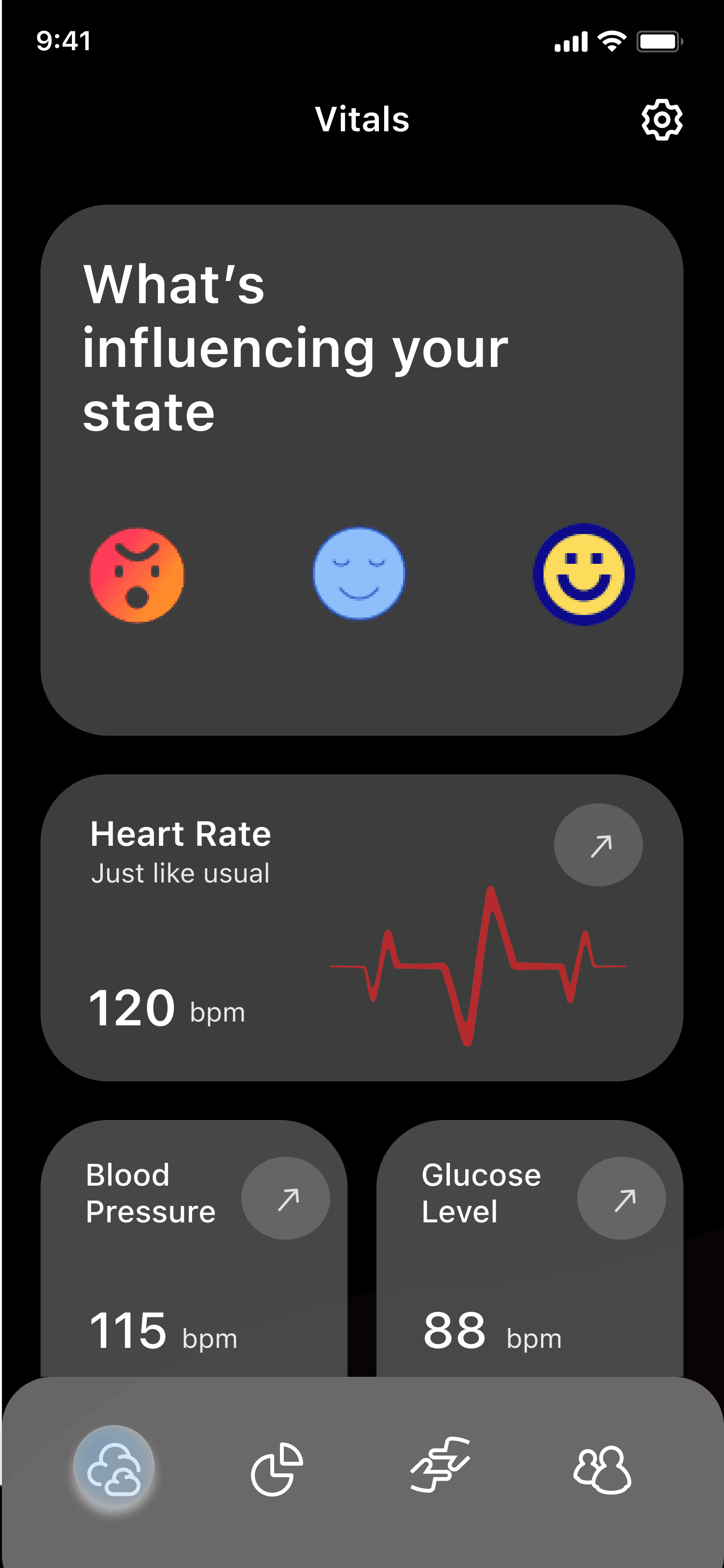 Social Cloud addresses the challenge of making internal emotional and social readiness visible without forcing explicit self-reporting. The project explores how abstract visuals, minimal choices, and passive body signals can communicate whether a user feels open to connection, needs distance, or simply wants to observe—without turning emotional states into numbers or judgments.